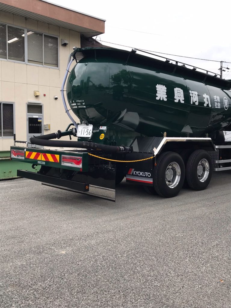 こちらの車で、皆様にお届けする生コンのセメントを安全に納品いたします。